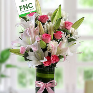 This delightful bouquet includes 3 stunning Purple Orchids paired with 3 cheerful Pink Daisies, enhanced by soft white gypsophila fillers and fresh green Murraya leaves. A simple yet elegant combination that radiates beauty and charm.