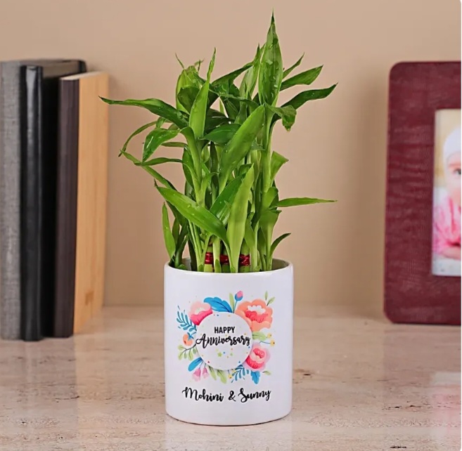 Delight your loved ones on their special day with this birthday-themed 2-layer bamboo plant This charming gift features a lush bamboo plant thriving in a stylish white ceramic pot. Beyond its aesthetic appeal, the bamboo plant offers numerous benefits, including air purification, bringing luck and positive energy, and symbolising resilience and flexibility. Its a meaningful and eco-friendly gift that will bring joy and positivity to any space.