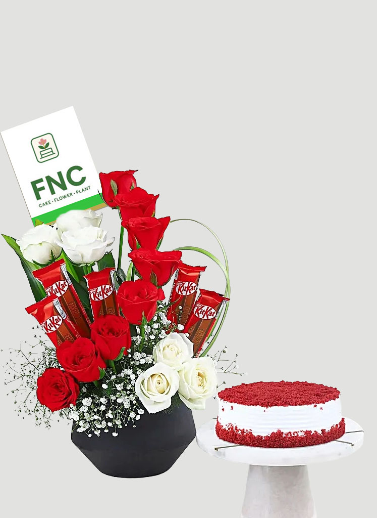 Elegance Red Velvet Delight Cake & Red Roses Ensemble